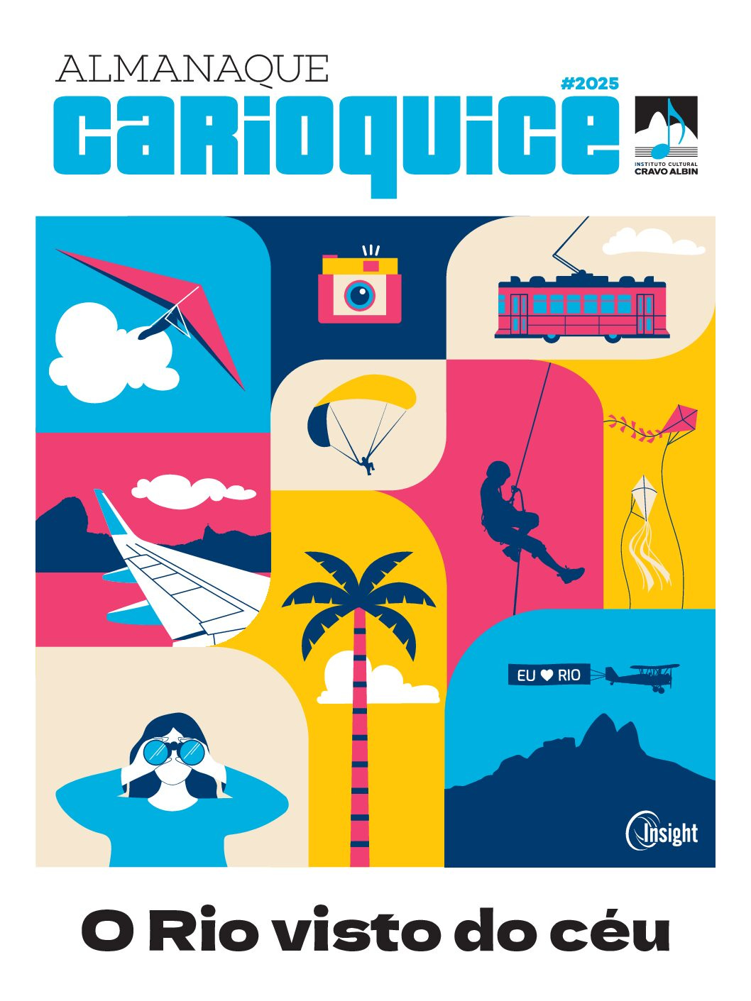 “O Rio visto do céu” é o tema da 8a. edição do Almanaque Carioquice, um projeto cultural que celebra o Rio e tudo que tem a cara da cidade: gente, história, cultura, música, pequenos negócios. Ele traz tudo o que a cidade possui e oferece lá no alto: parques, trilhas, passeios, santuários, restaurantes, monumentos, sambas, terraços e cultura. Com textos saborosos, belas fotos e endereços.